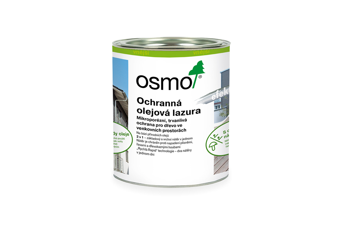 Ochranná olejová lazura na dřevo Efekt odpuzuje vodu a je mimořádně odolná vůči povětrnostním vlivům a UV záření. Porézní povrch s otevřenými póry je preventivně chráněn proti napadení plísní, řasou a houbou.