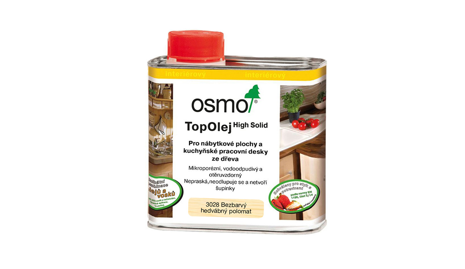 Top Olej učiní povrch dřeva odolným vůči skvrnám a chemikáliím používaným v domácnosti.