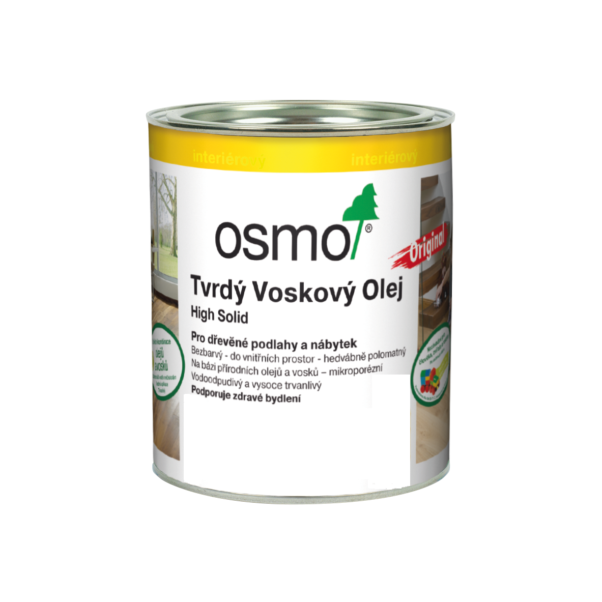 Tvrdý voskový olej Original zesiluje barevnou intenzitu přírodního vzhledu povrchu dřeva, je odolný vůči ošlapání, odpuzuje vodu a nečistoty, je trvale zatížitelný a mimořádně odolný