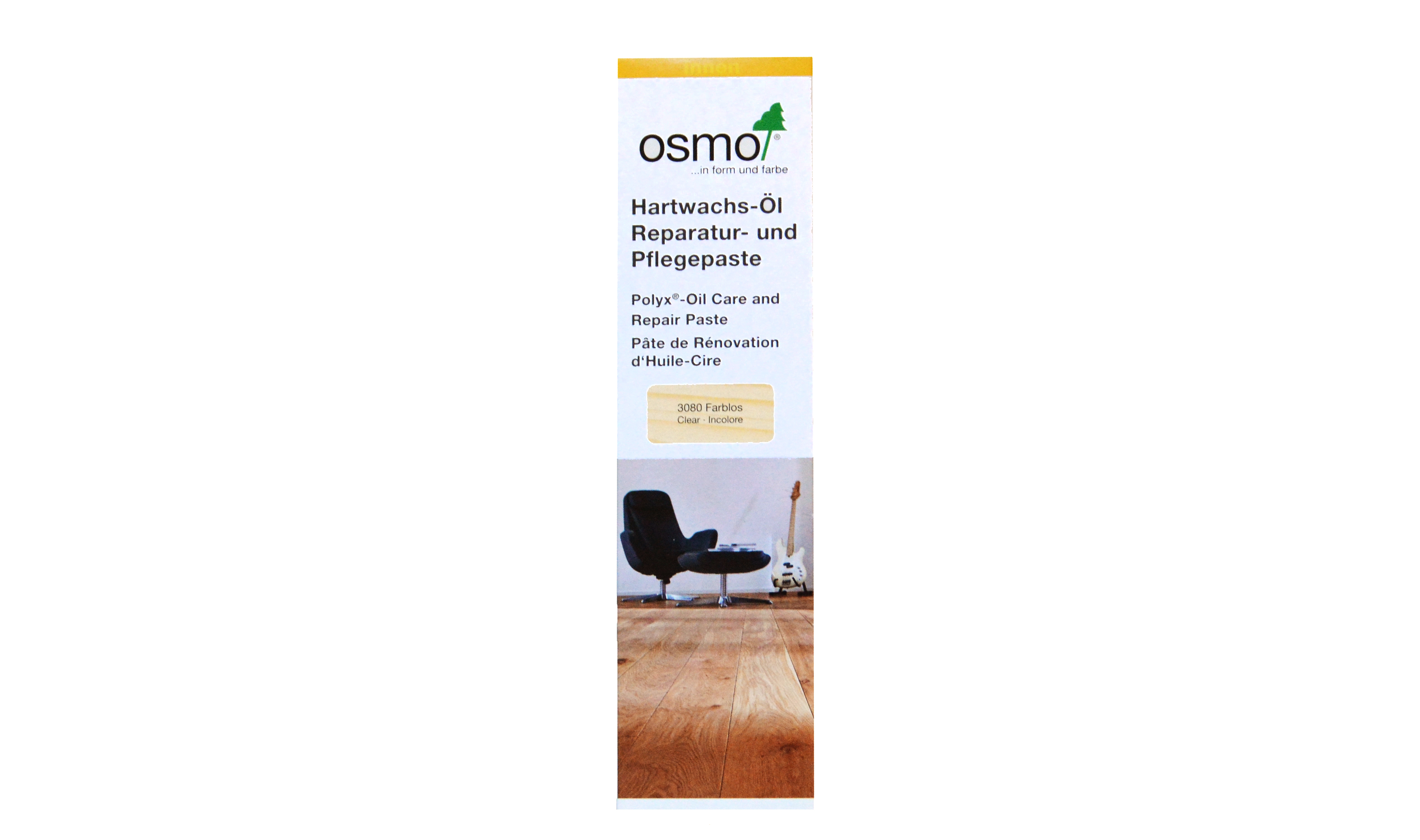 Bezbarvá kombinace vosku a oleje určená k opravě drobných poškození u všech dřevěných povrchů ošetřených Tvrdým voskovým olejem. Například povrchů nábytku a pracovních ploch z masivního dřeva (např. kuchyňské plochy, psací stoly, police, atd.) v interiéru. Také určen pro podlahy a schody z masivního dřeva, selských prken, palubek, OSB desek nebo pro korkové podlahy.