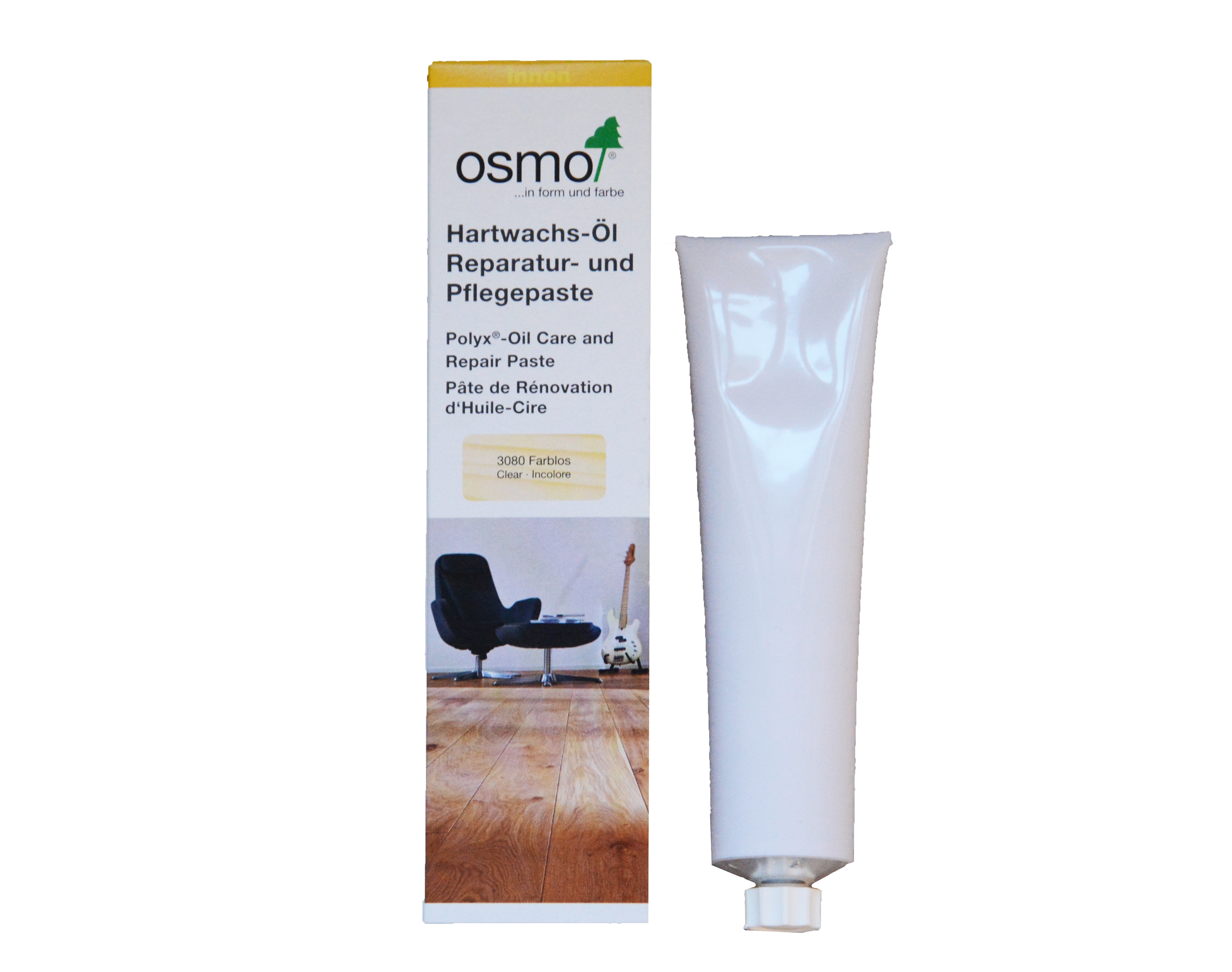 Osmo Tvrdý voskový olej – opravná a údržbová pasta je vytvořena na bázi přírodních rostlinných olejů a vosků.