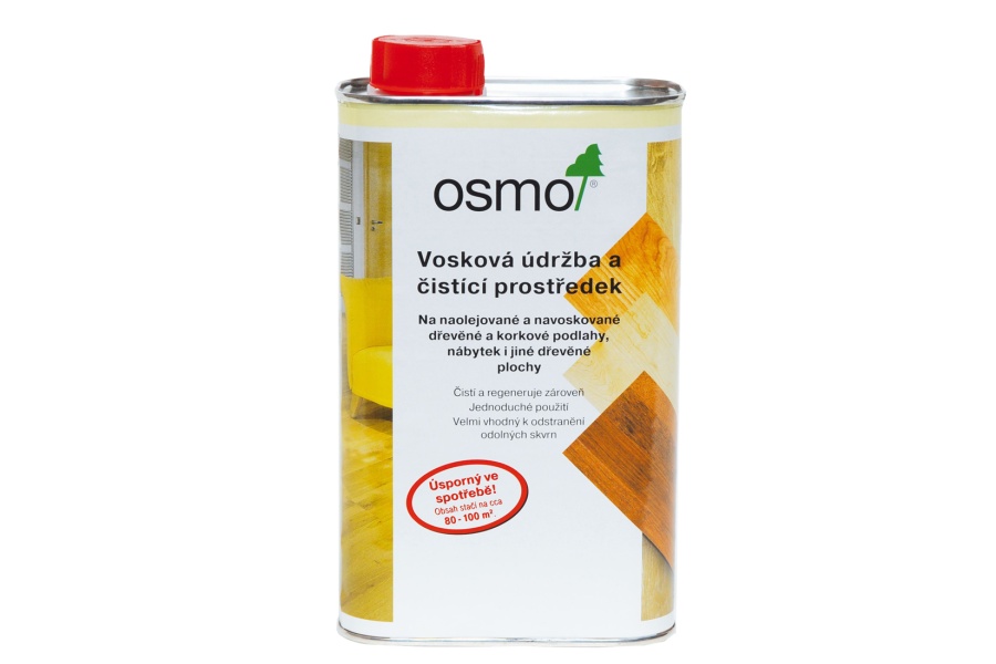 Bezbarvá nebo bíle transparentní, na podlahy a nábytek.Osmo Vosková údržba a čistící prostředek čistí a regeneruje zároveň; zásobuje dřevo přírodními tvrdými vosky.