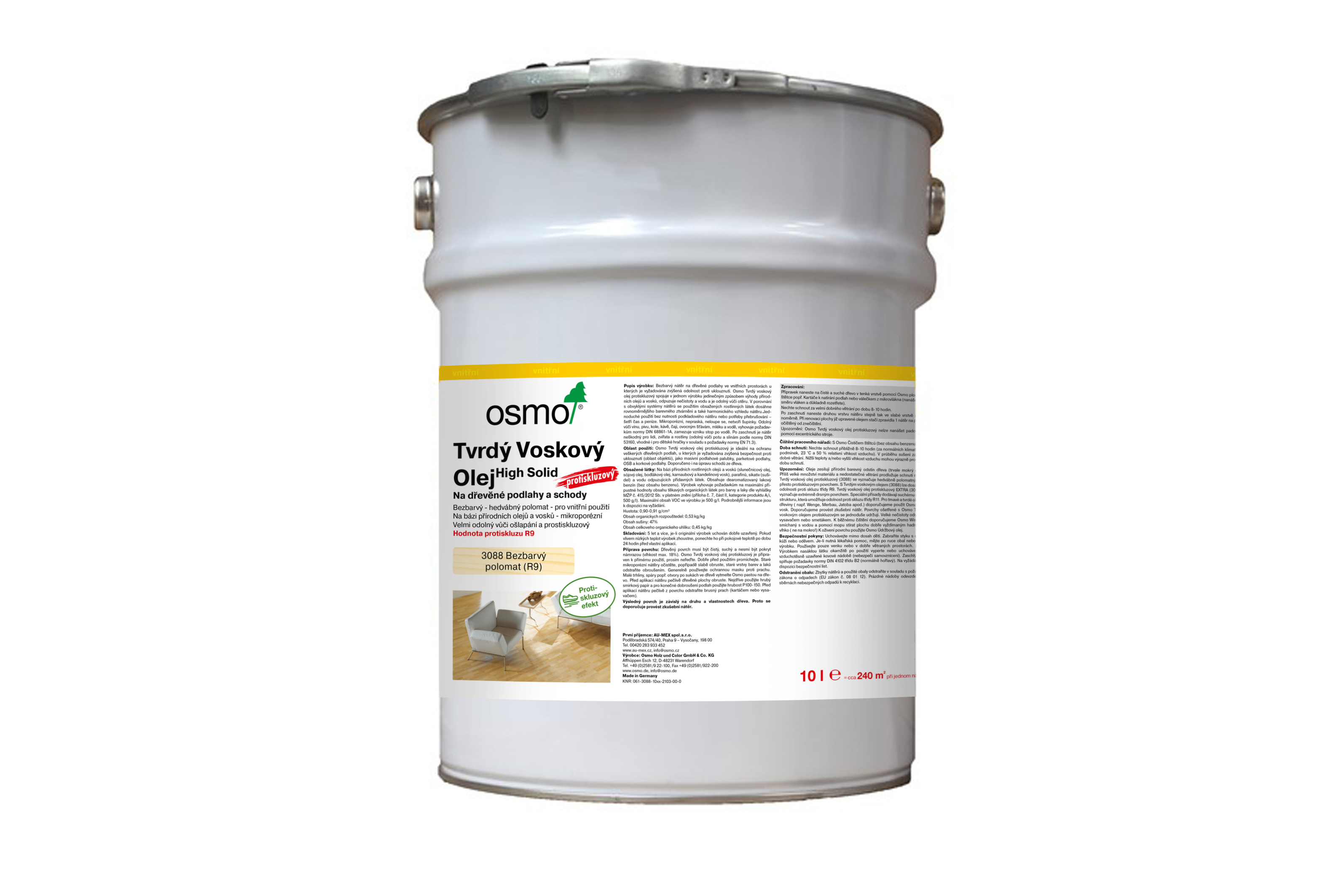 3089 Tvrdý voskový olej protiskluzový EXTRA: Tento materiál se vyznačuje extrémně drsným povrchem. Speciální přísady dodávají suchému nátěru strukturu, která umožňuje odolnost proti skluzu třídy R11.