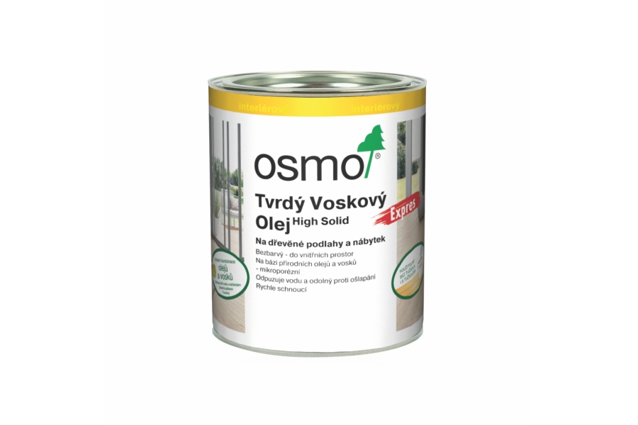 Profesionální, rychleschnoucí transparentní svrchní nátěr se zvláště tvrdým povrchem, který unikátním způsobem kombinuje přednosti přírodních olejů a vosků v jednom produktu. Plocha ošetřená výrobkem Osmo Tvrdý voskový olej Expres odpuzuje nečistoty a vodu, je odolná vůči otěru a je příjemná na dotyk. Jednoduché použití bez nutnosti podkladového nátěru nebo potřeby přebrušování – šetří čas a peníze. Mikroporézní, nepraská, neloupe se, netvoří šupinky. Odolný vůči vínu, pivu, kole, kávě, čaji, ovocným šťávám, mléku a vodě, vyhovuje požadavkům normy DIN 68861-1A, zamezuje vzniku stop po vodě. Po zaschnutí je nátěr neškodný pro lidi, zvířata a rostliny (odolný vůči potu a slinám podle normy DIN 53160, vhodné i pro dětské hračky v souladu s požadavky normy EN 71.3).