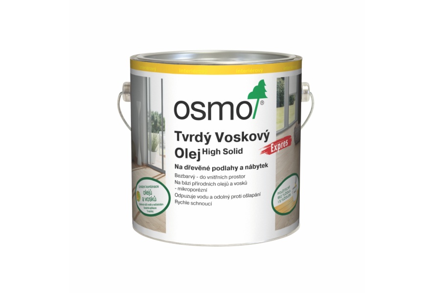 Profesionální, rychleschnoucí transparentní svrchní nátěr se zvláště tvrdým povrchem, který unikátním způsobem kombinuje přednosti přírodních olejů a vosků v jednom produktu. Plocha ošetřená výrobkem Osmo Tvrdý voskový olej Expres odpuzuje nečistoty a vodu, je odolná vůči otěru a je příjemná na dotyk. Jednoduché použití bez nutnosti podkladového nátěru nebo potřeby přebrušování – šetří čas a peníze. Mikroporézní, nepraská, neloupe se, netvoří šupinky. Odolný vůči vínu, pivu, kole, kávě, čaji, ovocným šťávám, mléku a vodě, vyhovuje požadavkům normy DIN 68861-1A, zamezuje vzniku stop po vodě. Po zaschnutí je nátěr neškodný pro lidi, zvířata a rostliny (odolný vůči potu a slinám podle normy DIN 53160, vhodné i pro dětské hračky v souladu s požadavky normy EN 71.3).