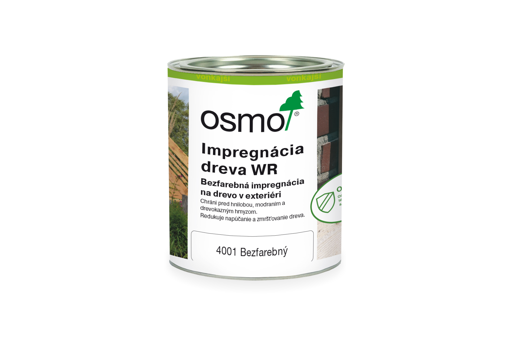 Osmo Impregnace dřeva WR silně odpuzuje vodu, snižuje bobtnání a sesýchání dřeva a působí preventivně proti rostlinným a zvířecím škůdcům dřeva jako plíseň, modrání dřeva a napadení hmyzem. Ideální jako základní nátěr pro barvy na bázi oleje, pro nutný konečný nátěr jsou vhodné všechny venkovní Osmo nátěry na dřevo!