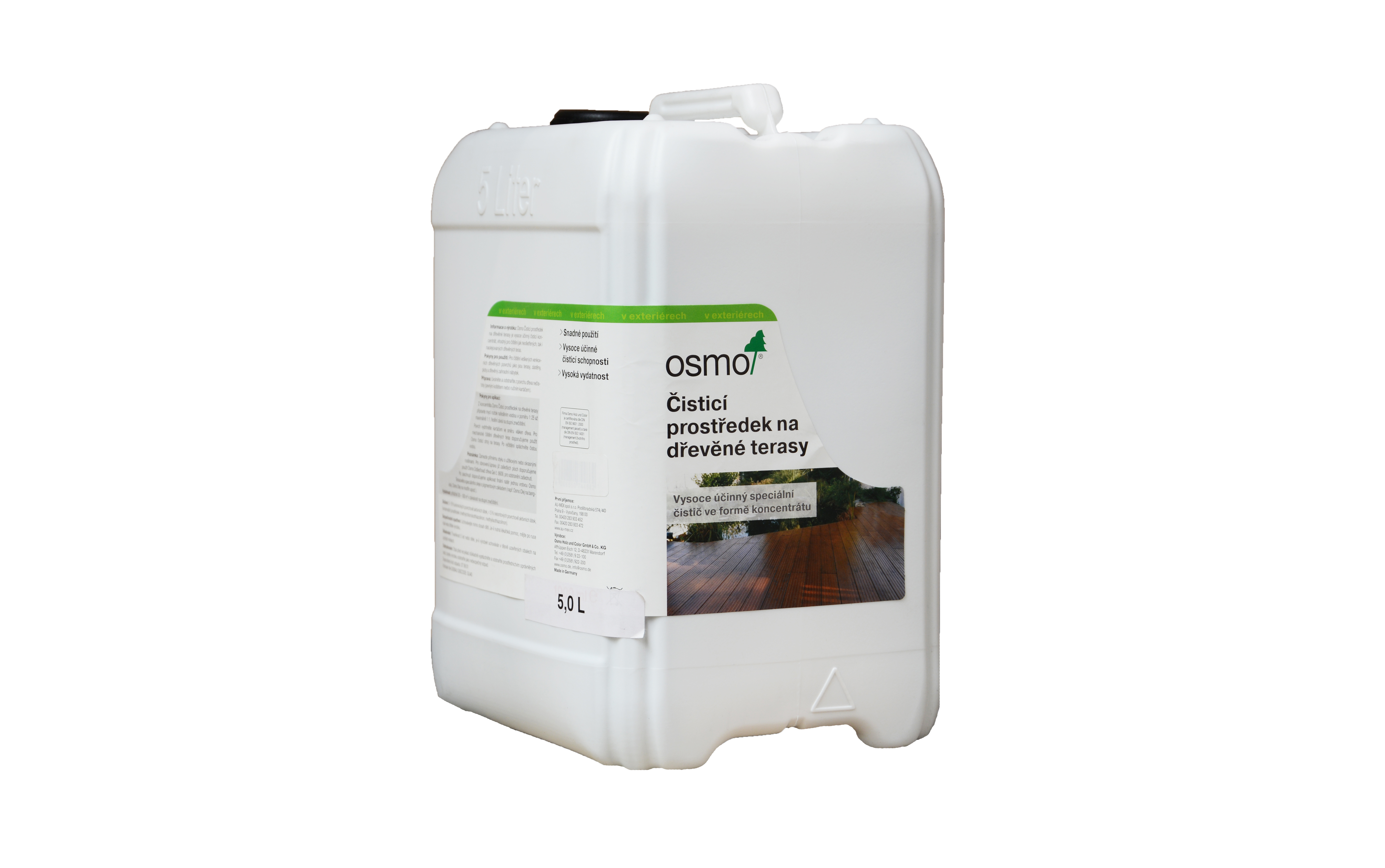 Osmo Čisticí prostředek na dřevěné terasy je vysoce účinný čisticí koncentrát, vhodný pro čištění jak neošetřených, tak i naolejovaných dřevěných teras.