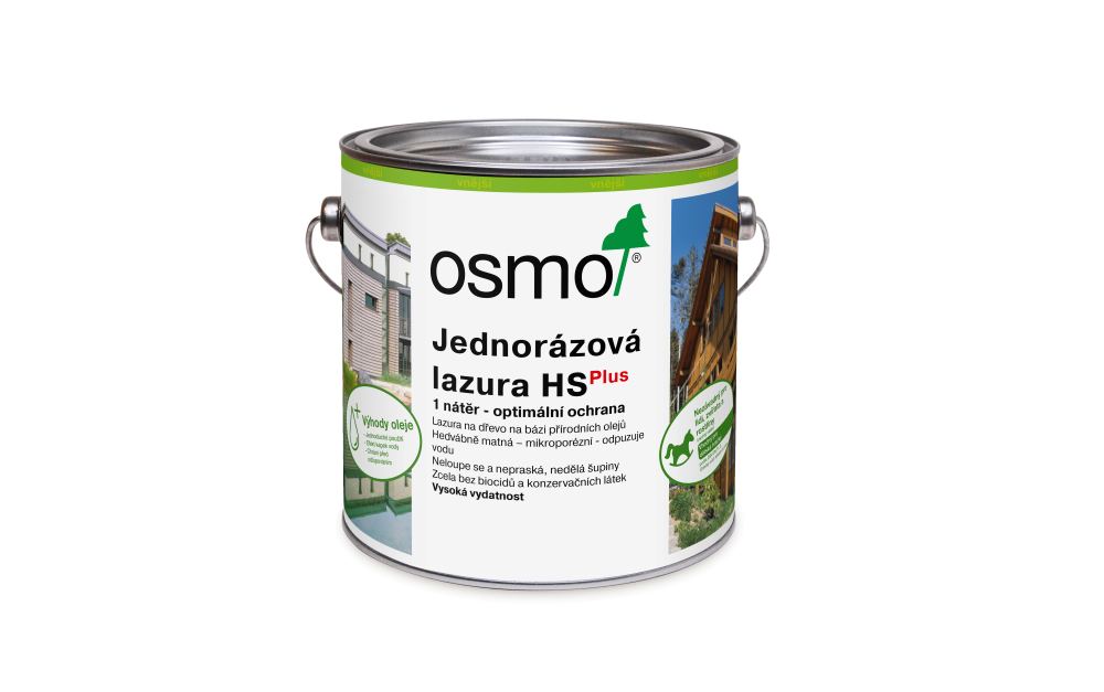 Jednorázová lazura HSPLUS vyhladí povrch dřeva, neodprýskává, nepraská a neodlupuje se. Nátěr je trvanlivý, odolný vůči povětrnostním vlivům a UV záření, odpuzuje vodu a reguluje vlhkost. Nenechá dřevo nabobtnat.