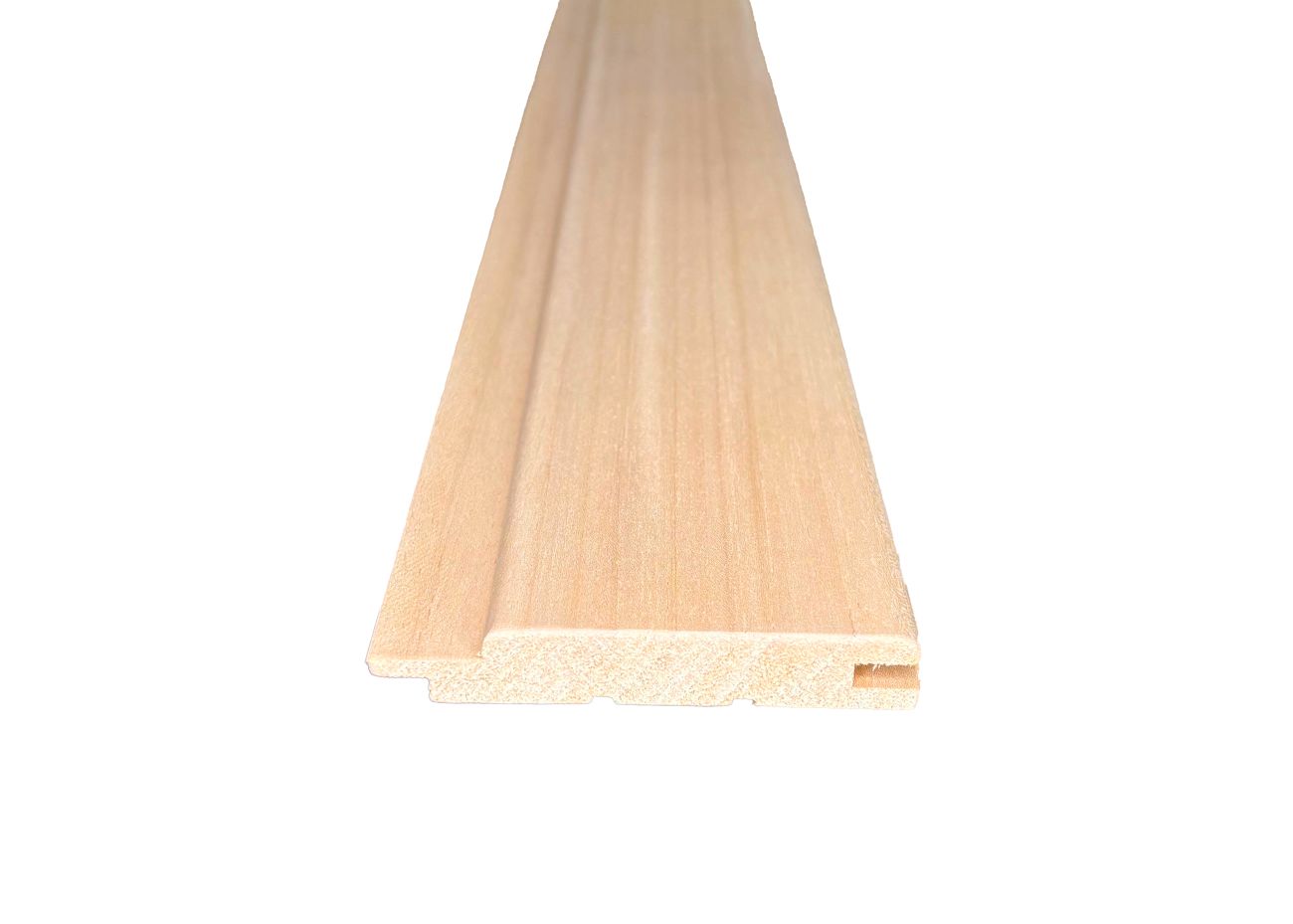 Softline profil (STP) s prodlouženým perem, které vizuálně eliminuje dřevu přirozené tvarové změny v důsledku změn vlhkosti. Vhodný pro obklady saunových stěn.