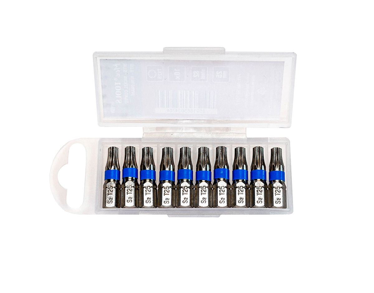 Bity MEX-TOOLS Hobby jsou vyrobeny z vysoce kvalitní oceli S2, známé svou houževnatostí a torzní pevností. Jádro je tepelně upraveno (HRC 58–60) pro vyšší odolnost proti nárazům a deformaci. Niklování zvyšuje korozní odolnost a snižuje tření, díky čemuž je šroubování plynulejší a bity si zachovávají přesnost i při opakovaném použití.