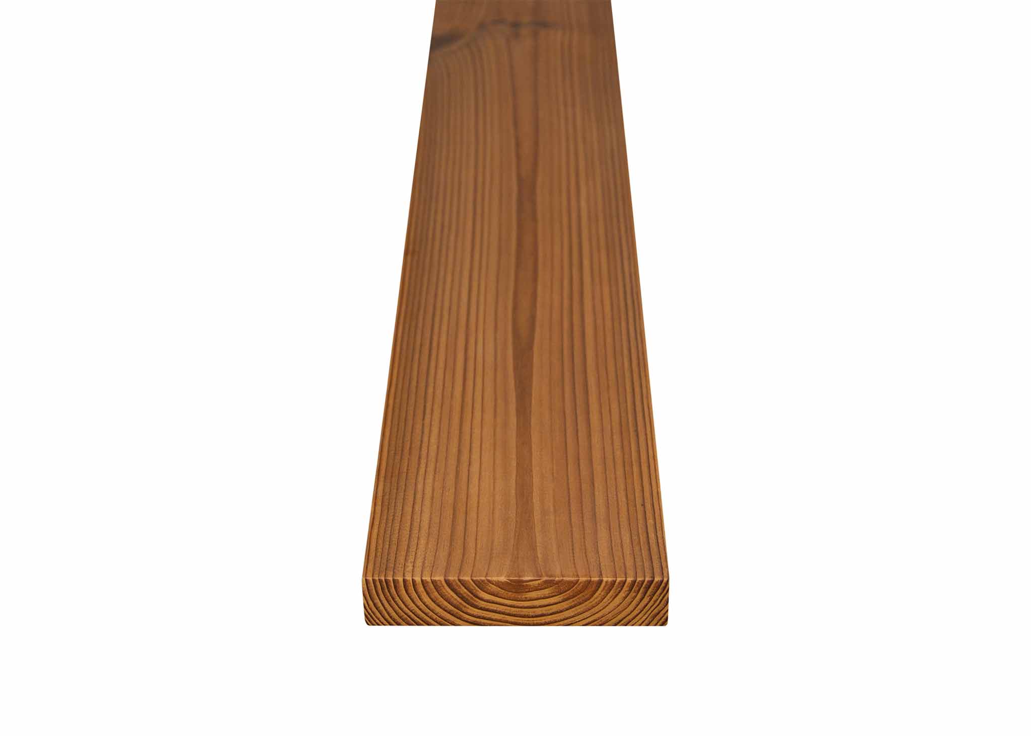 Námi dodávané Thermo dřevo je vyráběno metodou WTT při, které se využívá tepelná úprava dřeva při 212°C. Dřevo získá výrazně zlepšenou rozměrovou stabilitu a tím se snižuje náchylnost dřeva k deformacím resp. k bobtnání a následnému smršťování dřeva. Rozměrové změny se eliminují až o 60%.
