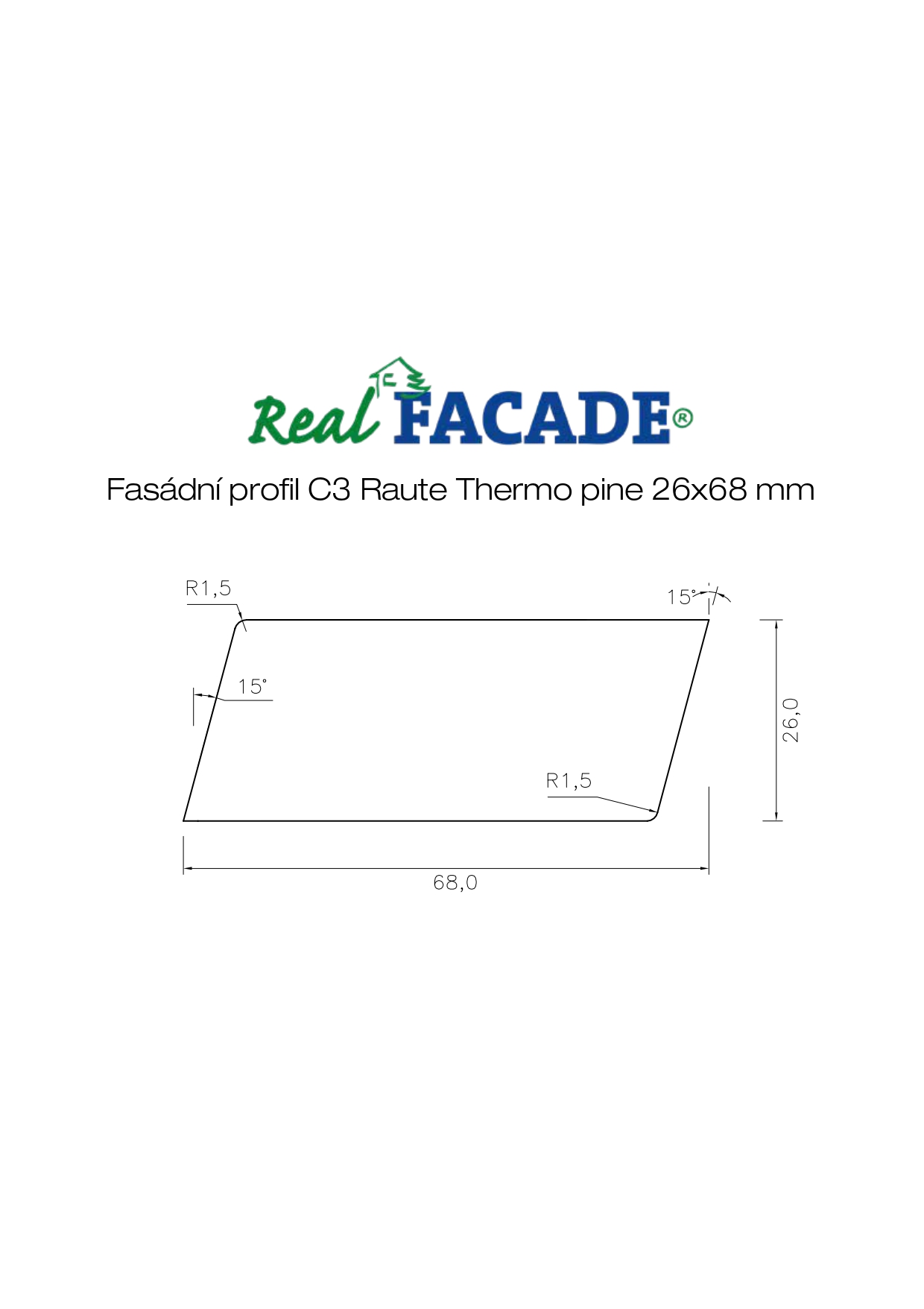 Námi dodávané Thermo dřevo je vyráběno metodou WTT při, které se využívá tepelná úprava dřeva při 212°C. Profil Raute má zkosení pod úhlem 15°.