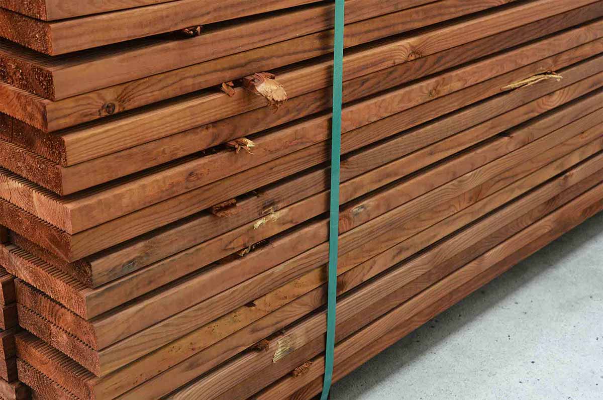 Borovicové sukovité dřevo má dobře zřetelné letokruhy. Je tlakově impregnované hnědou impregnační látkou čímž je výrazně prodloužena jeho životnost až o desítky let.