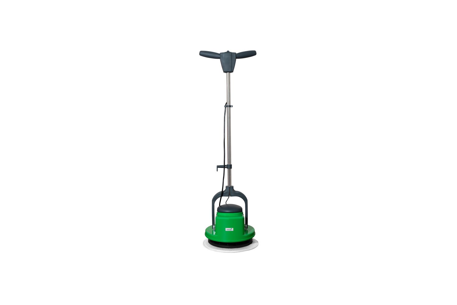 Stroj má výkonný motor 550 W. Vypínač je umístěn nahoře na rukojeti, takže už není nutné ho nepohodlně ovládat nohou. Motor má pozvolný rozběh (spouští se s mírným zpožděním), takže při zapnutí nedochází k výpadku jističe. Talíř je opatřen suchým zipem pro uchycení padů. V základní výbavě není přiložen pad.