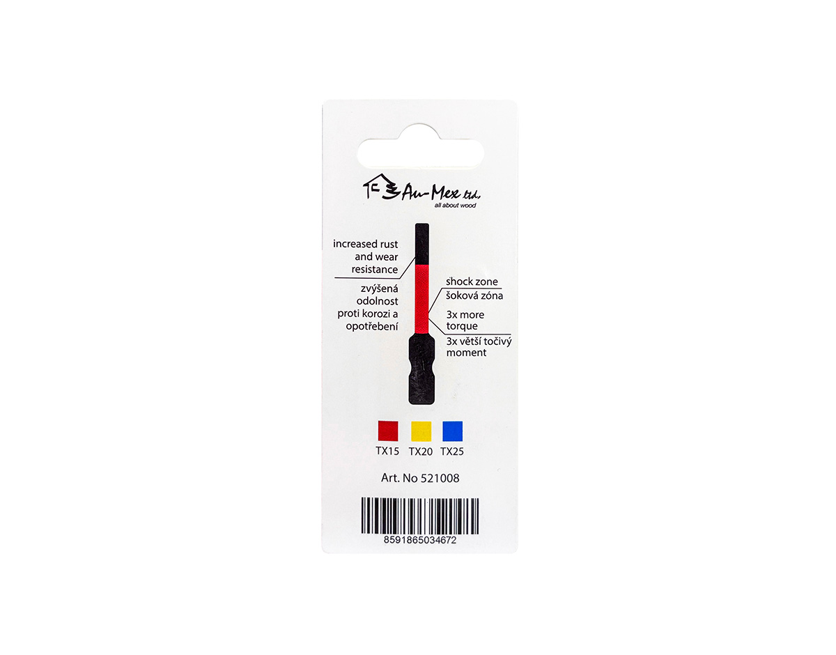 Impaktní bity z řady MEX-TOOLS Hobby jsou praktickým řešením pro domácí dílny a stavební projekty, kde je důležitá spolehlivost, jednoduchost a dostupná cena. Jsou navrženy pro běžné montážní práce, ale díky kvalitní oceli S2 zvládnou i vyšší zatížení.