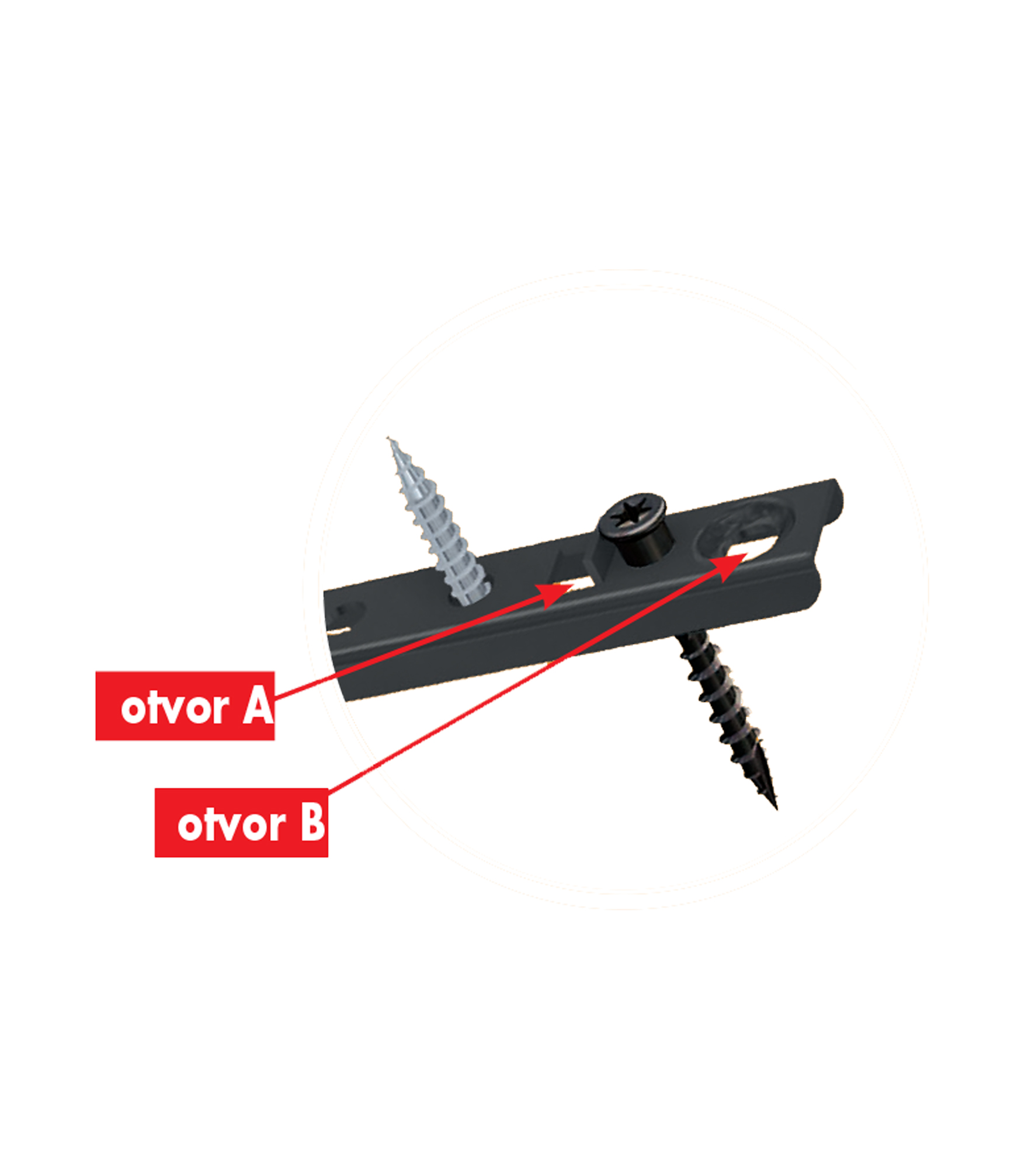 1. Klip na fasády přiložte zarážkou na zadní stranu a vložte montážní vrut.