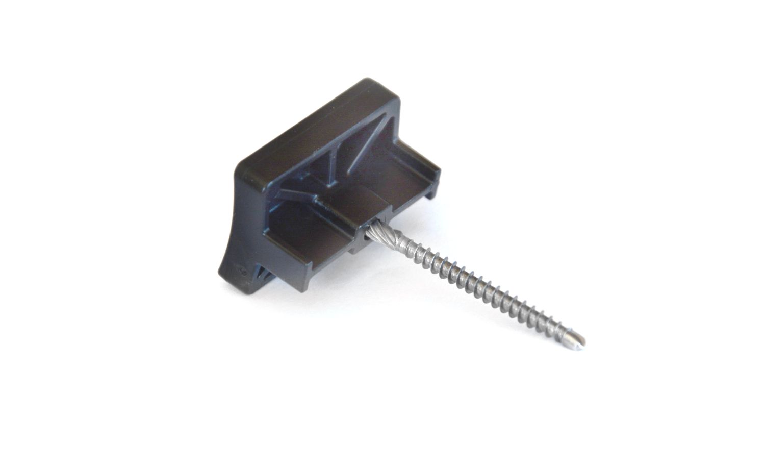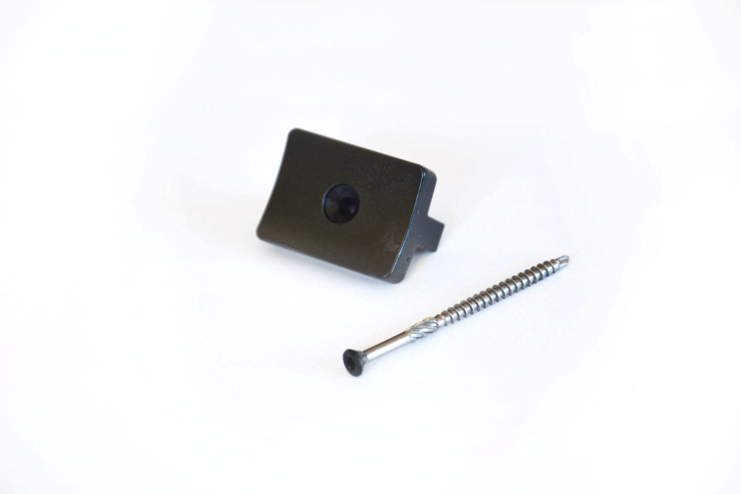 Terasový clip s vrutem pro pokládku terasy z Thermo borovice pro ze shora neviditelné připojení.