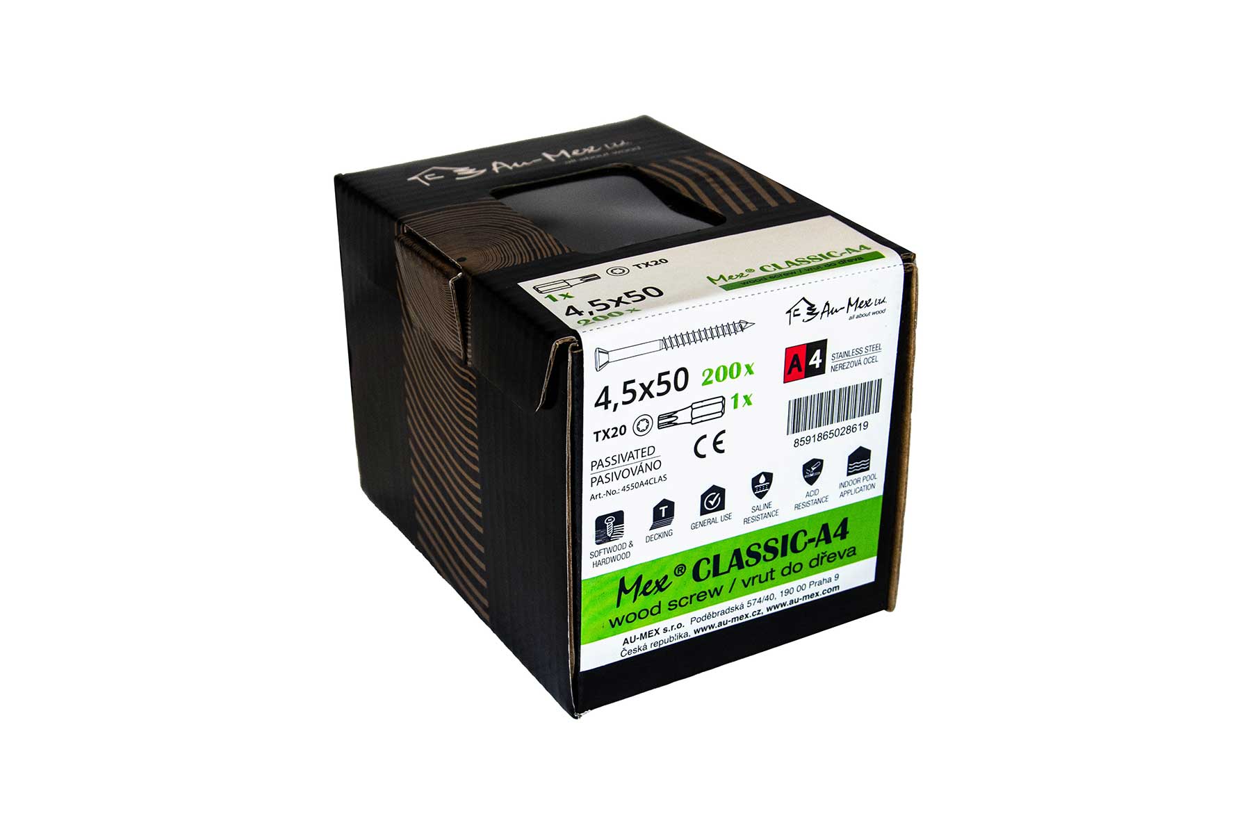 Mex Classic 4.5x50/TX20, nerezová ocel A4, 200 ks/balení+bit