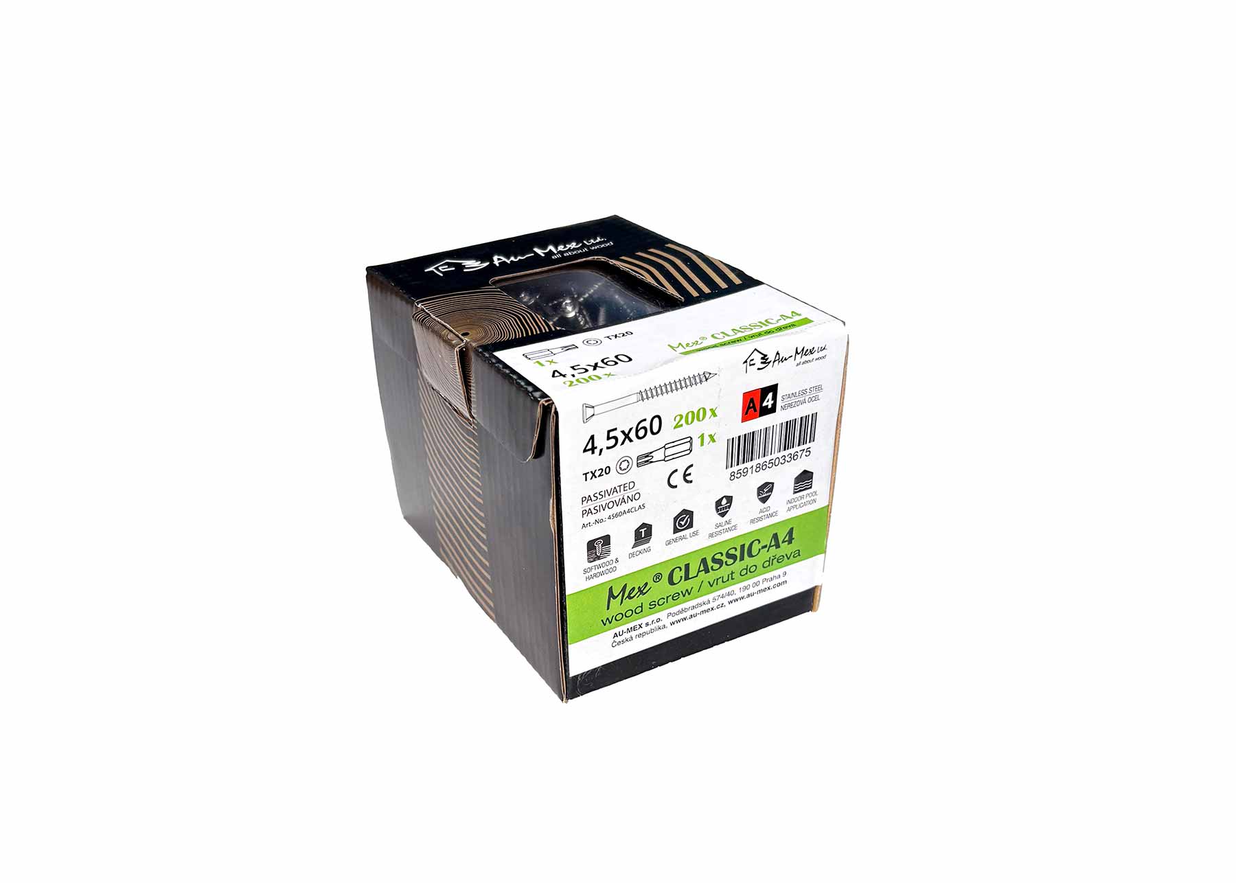 Mex Classic 4.5x60/TX20, nerezová ocel A4, 200 ks/balení+bit