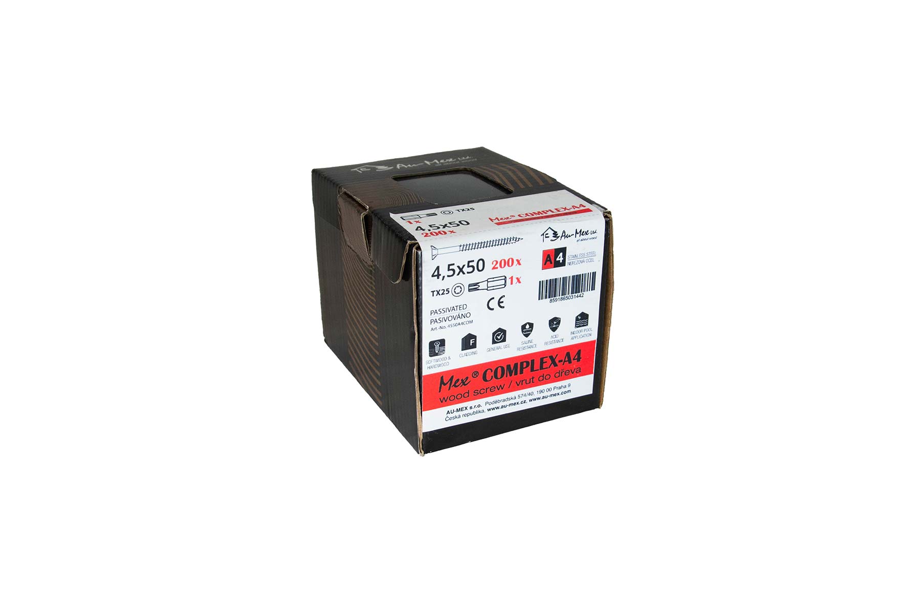 Mex Complex 4.5x50/TX20, nerezová ocel A4, 200 ks/balení+bit