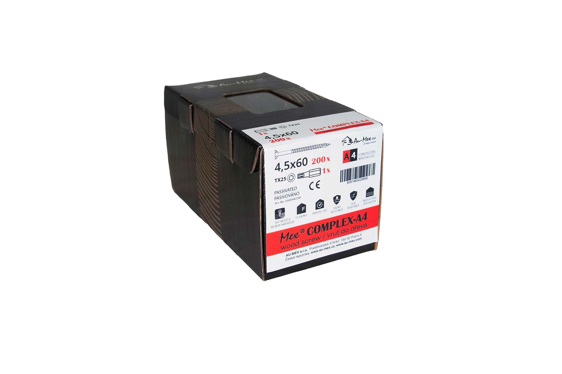 Mex Complex 4.5x60/TX20, nerezová ocel A4, 200 ks/balení+bit