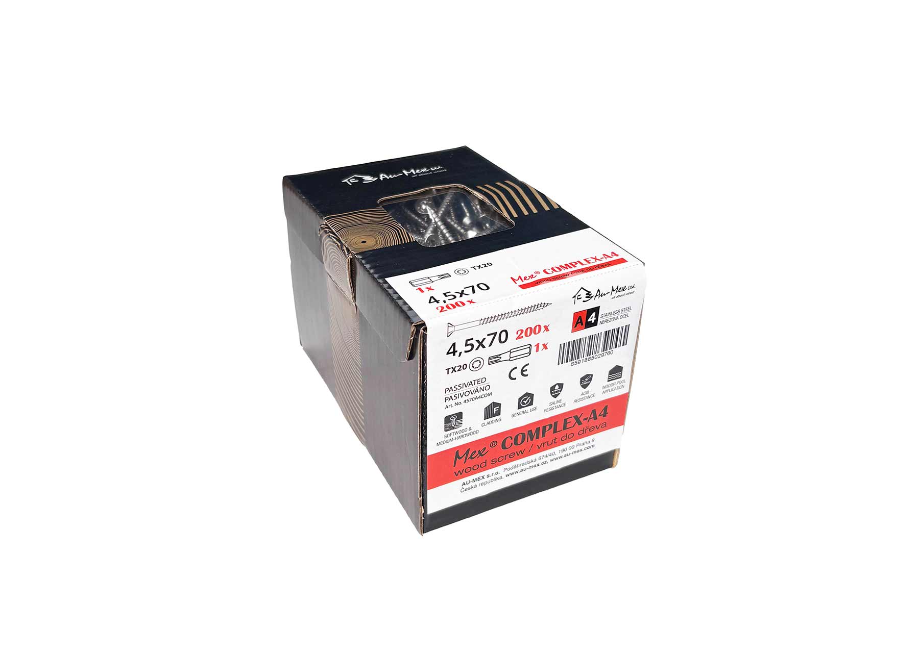Mex Complex 4.5x70/TX20, nerezová ocel A4, 200 ks/balení+bit