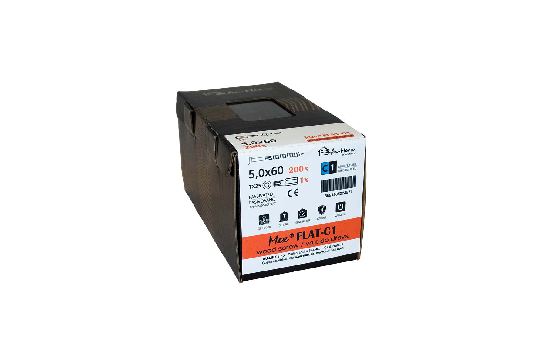 Mex Flat 5.0x60/TX25, nerezová ocel C1, 200 ks/balení+bit