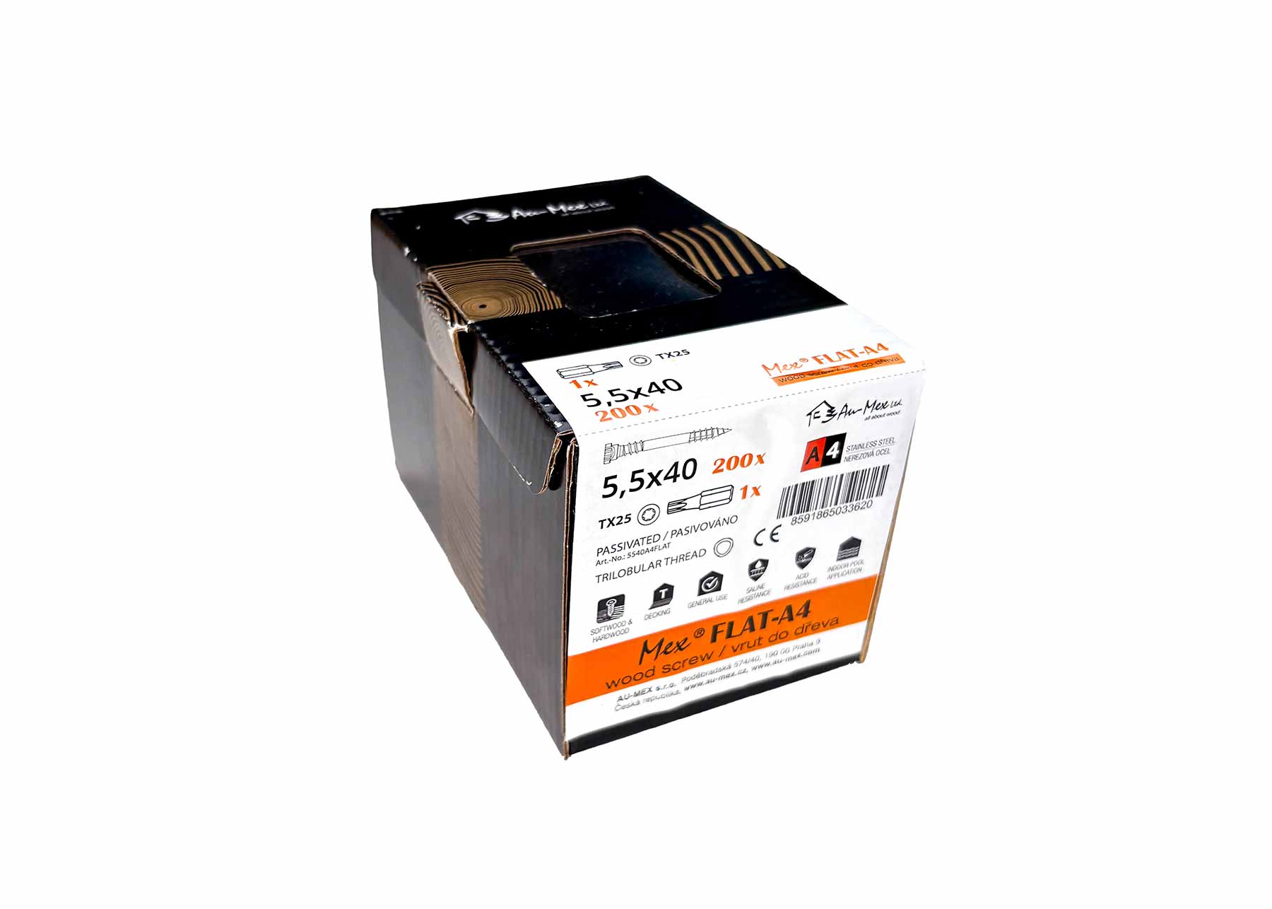 Mex Flat 5.5x40/TX25, nerezová ocel A4, 200 ks/balení+bit