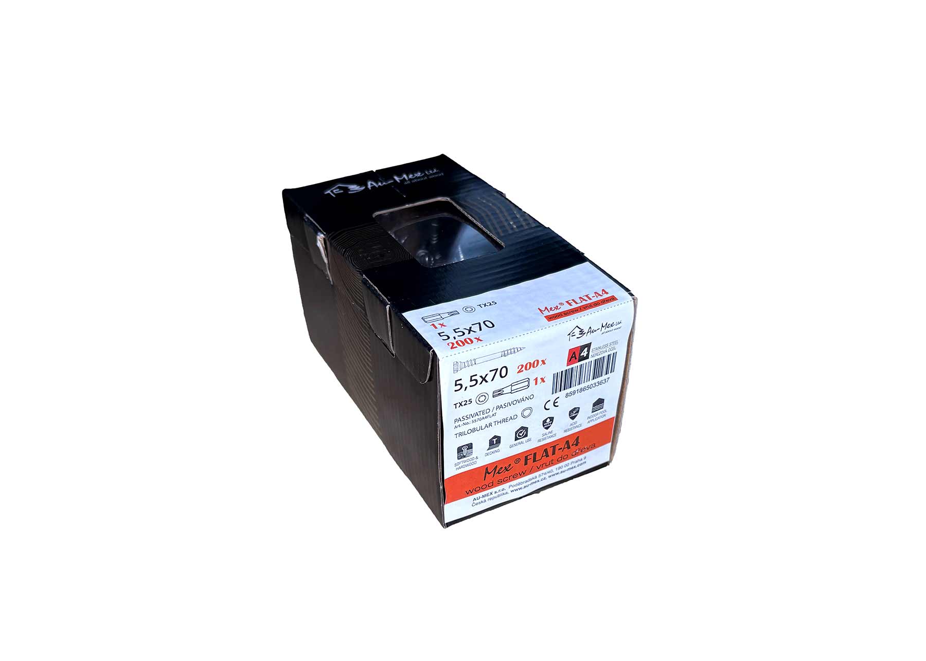 Mex Flat 5.5x70/TX25, nerezová ocel A4, 200 ks/balení+bit