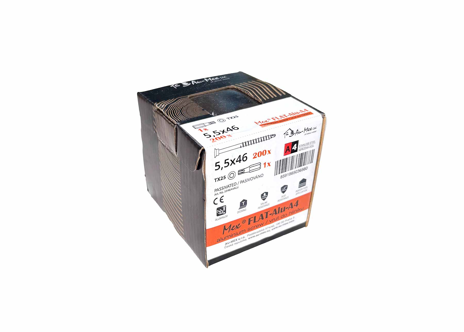 Mex Flat Alu 5.5x46/TX25, nerezová ocel A4, 200 ks/balení+bit