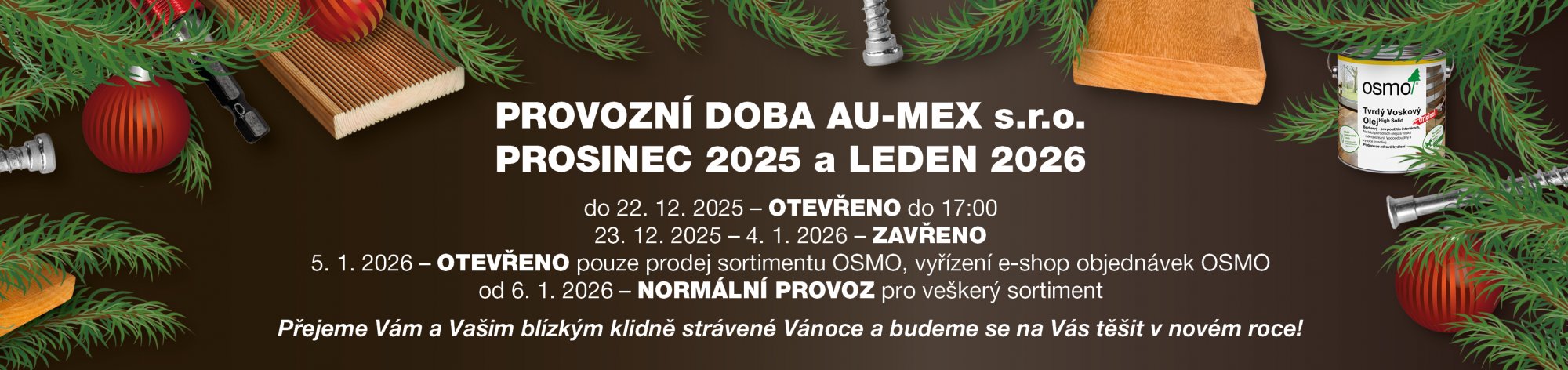 věnujte prosím krátkou pozornost upravené provozní době během svátečního období a začátku ledna.