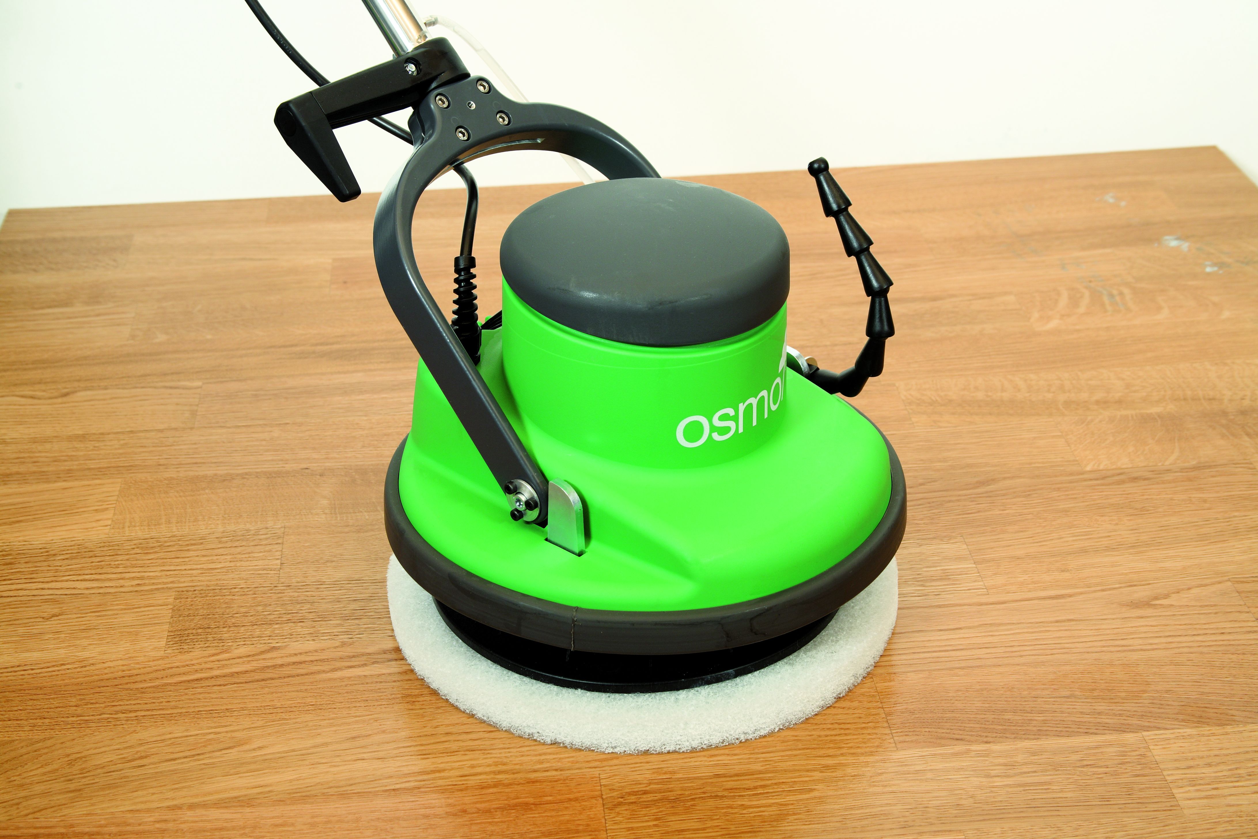 Po nanesení pigmentového základu je doporučeno ca. 30 – 40 minut nechat pigmenty a oleje proniknout do pórů dřeva a po té vypadovat bílým padem, který zajistí optimální roznesení a vmasírování do hloubky dřeva. Zároveň sebere případné přebytky oleje.