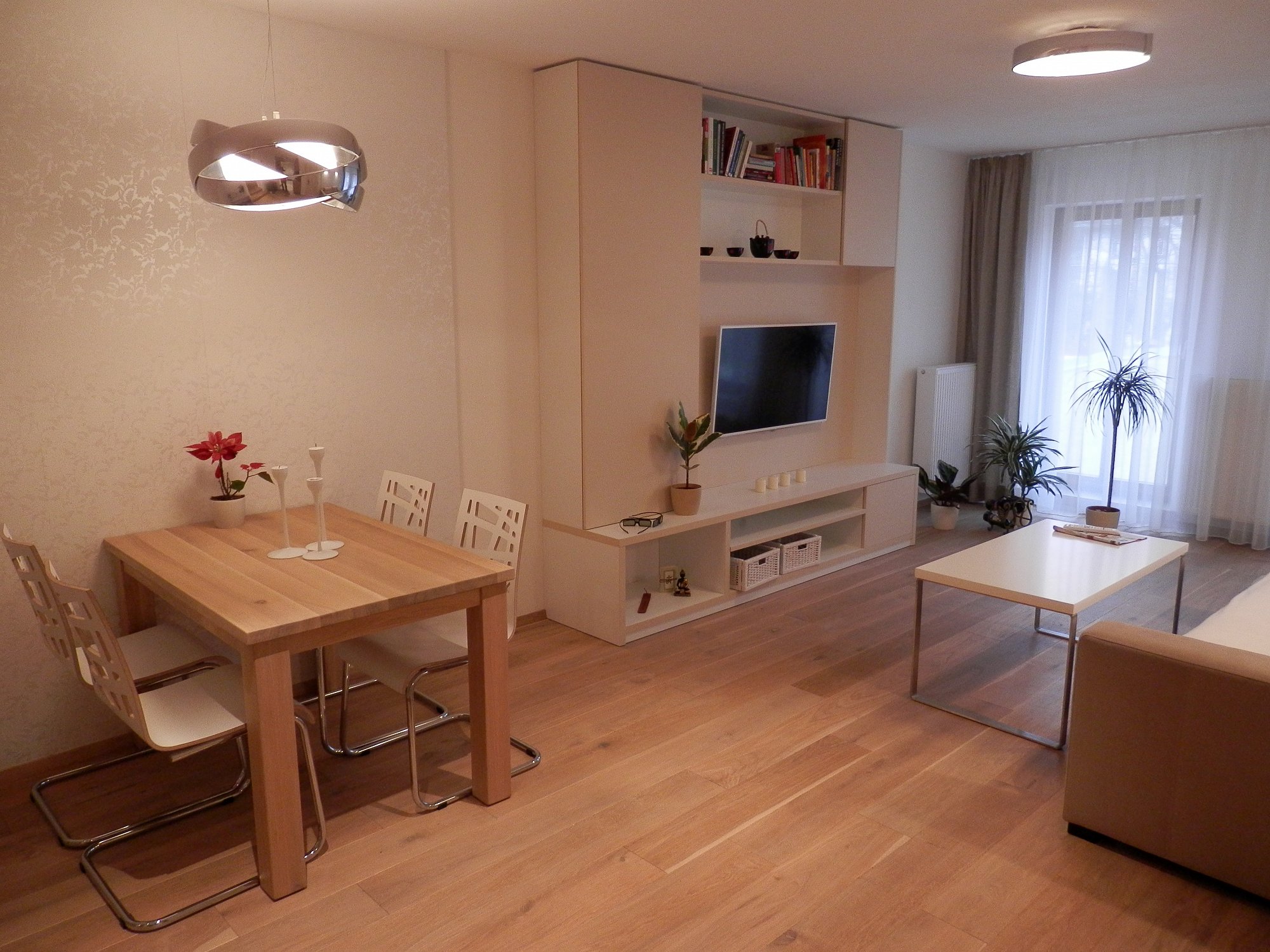 Tato kuchyně je vyrobena z desek s pravou dubovou dýhou, která je ošetřena kombinací 2 druhů OSMO Tvrdých voskových olejů. Aby si dřevo zachovalo svojí přírodní pravost a vzhled, byl pro první nátěr použit OSMO Tvrdý voskový olej Effekt č. 3041 Natural, který chrání dřevo téměř neviditelně díky obsaženým 2 % bílého pigmentu, které se postarají o zachování původního světlého odstínu dřeva. Pro druhý nátěr byl použit OSMO Tvrdý voskový olej č. 3062 Bezbarvý matný, aby byla zachována přírodní optika a zároveň, aby bylo dřevo dokonale chráněno. Barevný prvek je proveden OSMO Olejovým mořidlem č. 3564 Tabák s opětovnou konečnou úpravou pomocí OSMO Tvrdého voskového oleje č. 3062 Bezbarvého matného. Všechny OSMO nátěry jsou založeny na spojení přírodních dorůstajících surovin, přírodních olejů a vosků: slunečnicový olej, sójový olej, lněný olej, olej z bodláku, carnaubový vosk a přesličkový vosk.