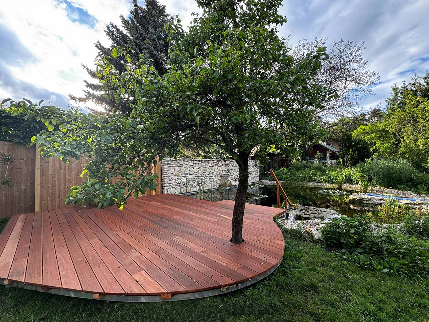Pokud se rozhodnete pro ošetření tohoto dřeva OSMO Terasovým olejem, nenatírejte toto dřevo dříve než ca. 3 měsíce po pokládce, kdy dojde k přirozenému úbytku ve dřevě obsažených látek. Nejlépe se pro ošetření hodí OSMO Terasový olej Massaranduba č. 014. Můžete ponechat toto dřevo i bez povrchové úpravy, máte-li rádi přirozeně šedé dřevo. Massaranduba je známá tím, že šedá patina, která se na dřevu vytvoří působením povětrnostních vlivů je velmi přirozená a jemná. Na fotografiích vidíte varianty s povrchovou úpravou i bez.