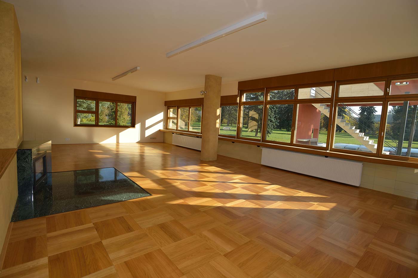 Impozantní vilu si továrník a mecenáš Josef Volman vysnil v rozlehlém parku nad romantickou krajinou řeky Labe v Čelákovicích, 20 km na východně od Prahy. Jednu z nejkrásnějších a nejdražších rezidencí první republiky pro něj v letech 1938-1939 navrhli mladí avantgardní architekti Karel Janů a Jiří Štursa. Velkolepý areál vily je vynikající ukázkou moderního bydlení meziválečné doby, tím nejlepším z českého funkcionalismu a architektury i myšlenek Le Corbusiera, který byl architektům velkou inspirací a vzorem. Bylo nám ctí se podílet na realizaci podlahových dubových parket, které nyní zdobí dobový interiér Volmanovy vily.