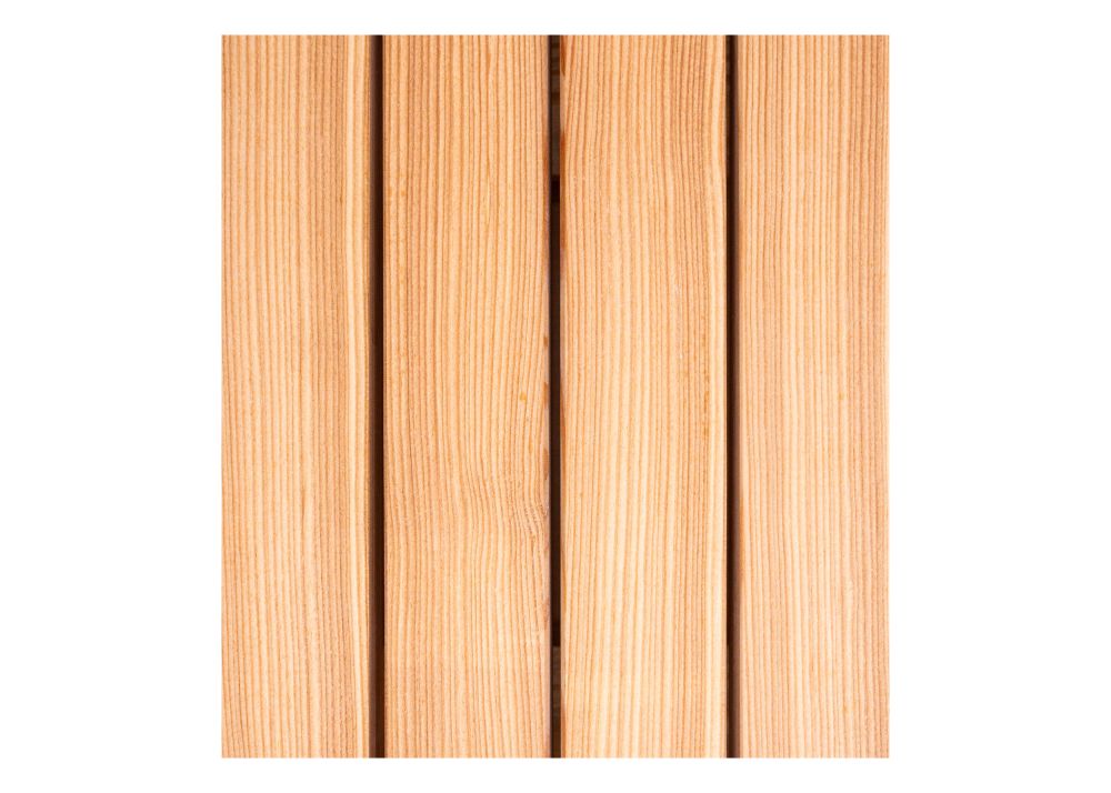 Bělové dřevo nažloutle bílé, jádrové dřevo načervenale hnědé až tmavě červenohnědé, dále tmavne. K typickým vlastnostem modřínu slezského patří sklon k ronění pryskyřice, které se může vyskytnout při pokládce i po dokončení. Pomocí výrobku od OSMO "Sada k odstraňování pryskyřice" však tento malý problém odstraníte jednoduše sami. Modřín je obzvláště citlivý na železo, a aby se zabránilo místům od rzi, doporučujeme připevňovací prostředky pouze z ušlechtilé oceli. Protože má modřín sklon k rozštěpu, měla by být všechna místa k připevnění předvrtána. Na konce čel doporučujeme použít výrobek OSMO Vosk na řezné hrany č. 5735.