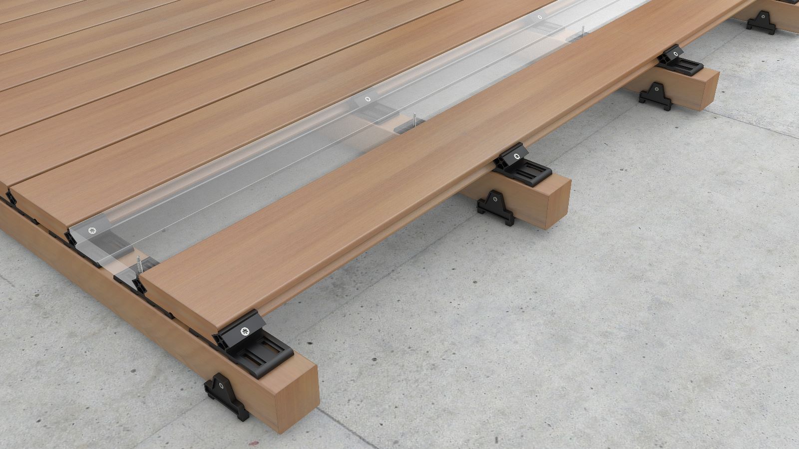 - připojení terasových prken bez viditelných hlav šroubů