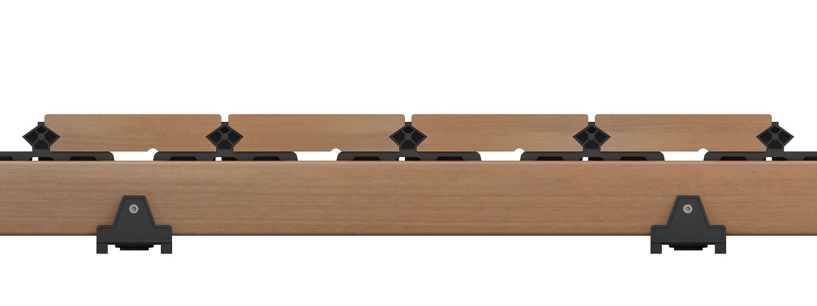 - clip zajišťuje zvednutí 5 mm od nosné konstrukce, což podporuje cirkulaci vzduchu pod terasou, dřevo je tak chráněno i ze spodní strany vůči nadměrnýmu nasákání vody, což výrazně eliminuje tvorbu plísní
