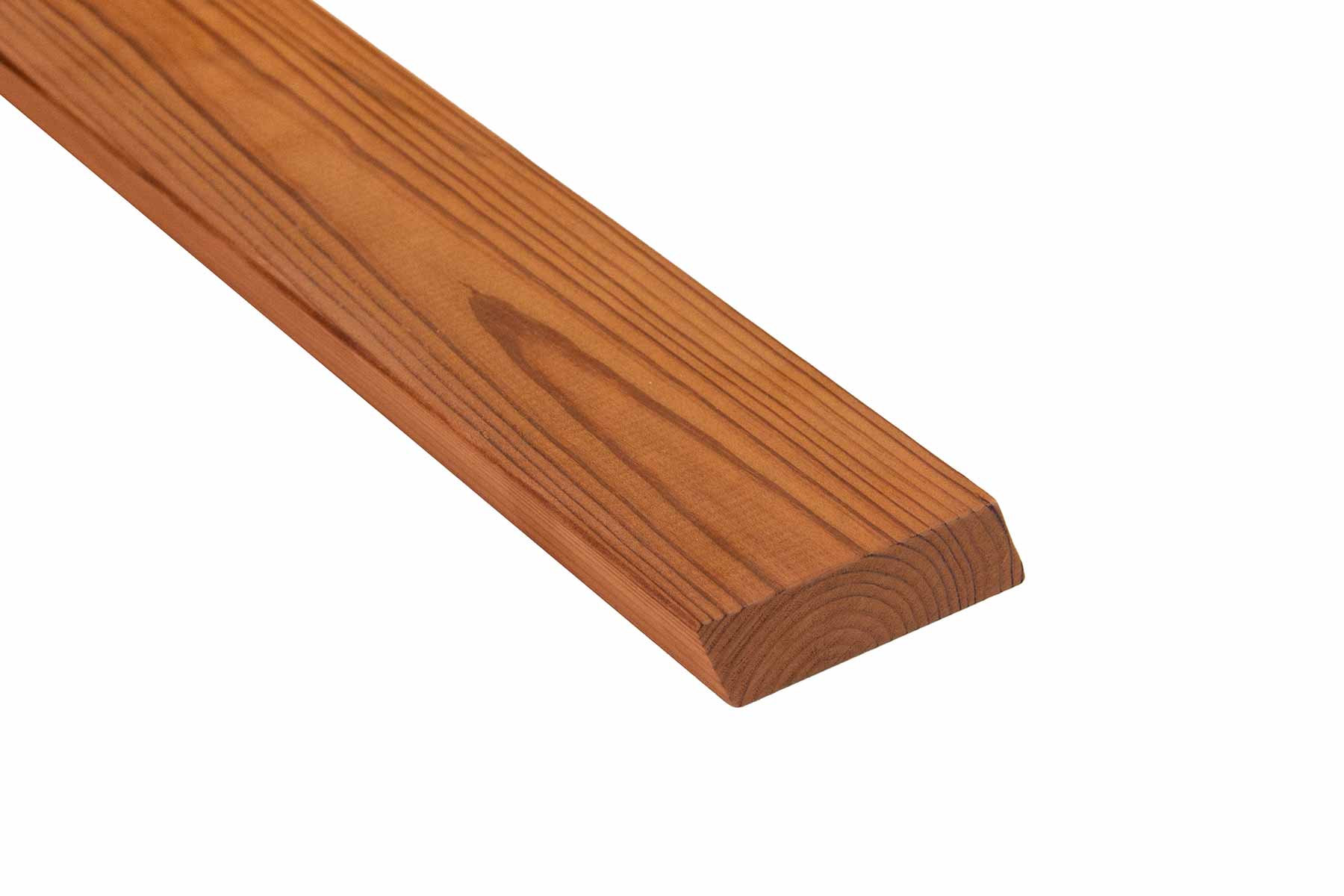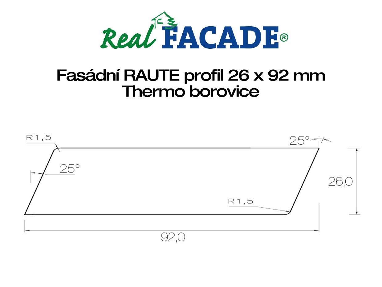 Dřevo vykazuje zvýšenou odolnost vůči hnilobě a plísním a zároveň i zlepšené izolační vlastnosti. Tento Raute profil má zkosení 25°.