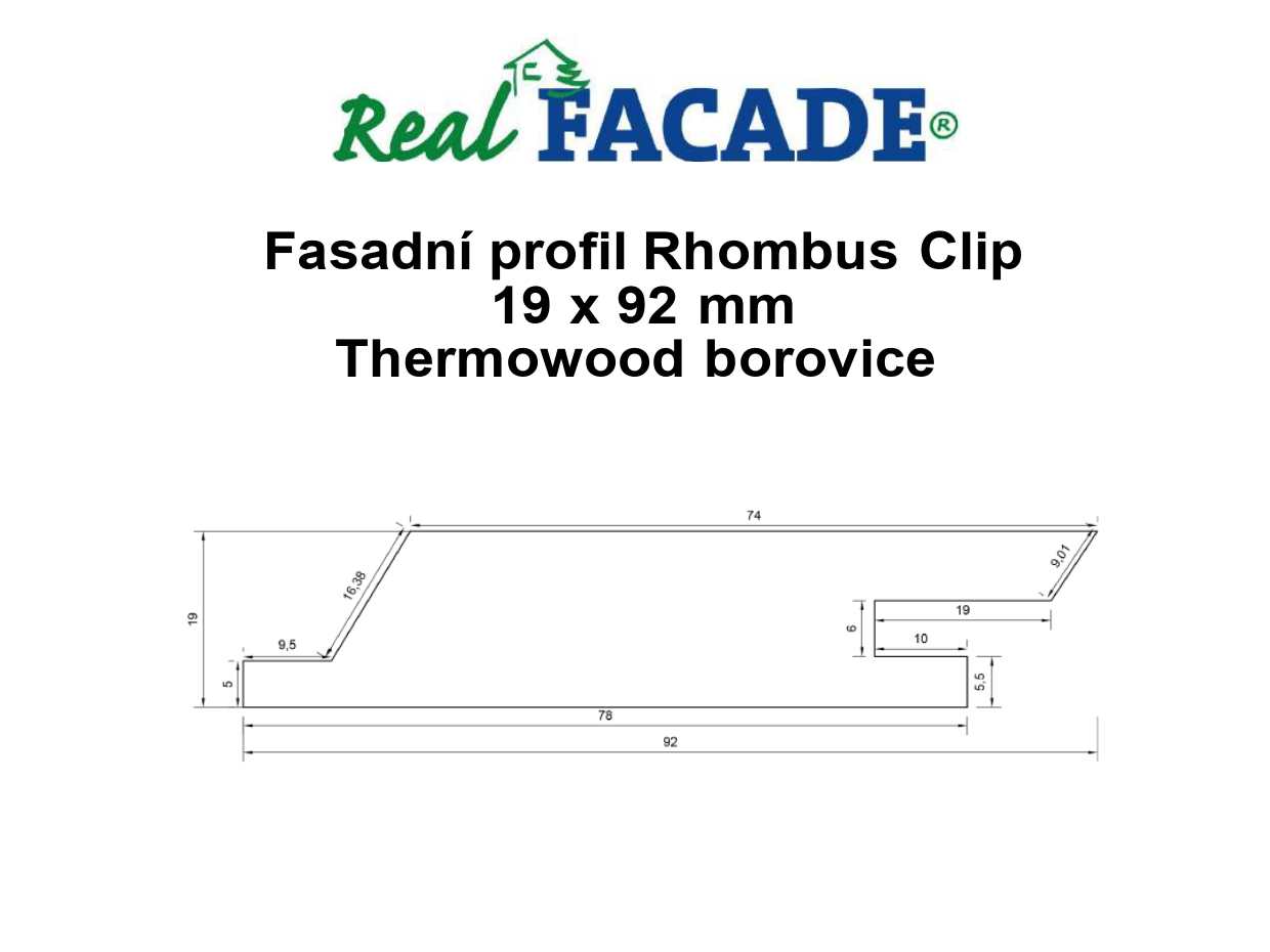Fasádní profil Rhombus Clip je vyroben pro pokládku se speciálně navrženými H clipy, které umožňují rychlejší a snadnější instalaci dřevěných fasád, umožňují cirkulaci vzduchu pravidelnými mezerami 5 mm, díky přizvednutí fasádních dílců nad podkladní konstrukcí.